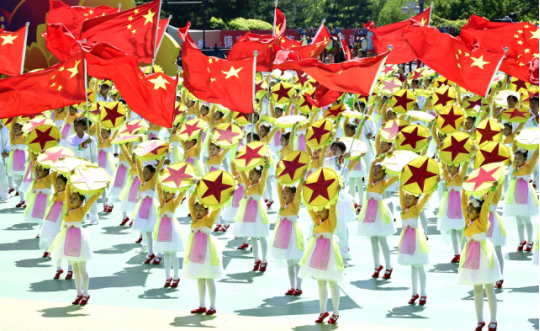 随后,庆祝大会举行了《祝福延边》群众文艺表演。表演分为序幕《鼓舞延边》和《难忘的那一天》、《心手相依》、《母亲是中华》、《创新未来》四个篇章以及尾声《幸福延边》,伴随着欢快的乐曲声,延边各族儿女身着盛装、载歌载舞,共祝伟大祖国繁荣昌盛、延边的明天更加美好。