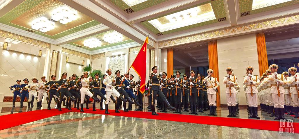礼兵列队迎接外宾。(总台央视记者钟锐 拍摄)