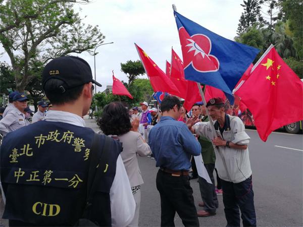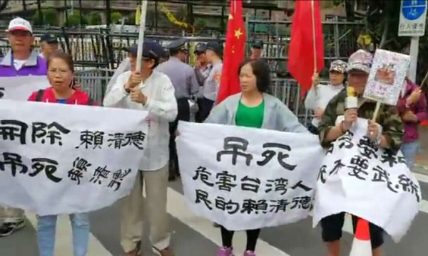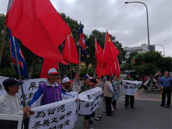 2018年4月18日,在台北市,上演了一场轰轰烈烈的反对以蔡英文、赖清德为首的反台独大集会行动。集会的组织者是台湾中华爱国同心会,他们打着中华人民共和国国旗、中华爱国同心会会旗,展示着标语。标语上写着:“开除赖清德”、“吊死赖清德”、“要和平统一,不要武统”等愤怒至极的语言文字。