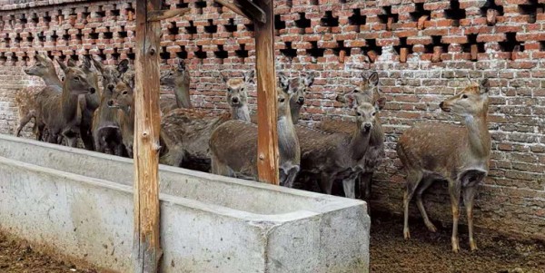 圈养的梅花鹿母鹿圈