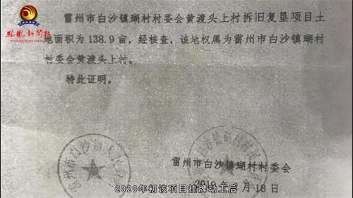据了解,为实施振兴农村战略,建设美丽宜居新农村,2019年7月30日雷州市自然资源局同意立项批复白沙镇政府申报的《雷州市白沙镇瑚村村委会黄渡头上村拆旧复垦项目》。村民们称,2020年初该项目挂牌动工后,黄渡头下村村民才知道此项目的立项事宜,经村民从有关附图、项目规划和实地对比后,发现项目用地138.9亩中包含的“雷公崁”和“上塞崁”共92.94亩属于黄渡头下村的集体土地。