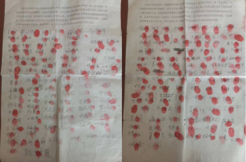 (附:村委会照片和百名联名举报村民签字画押照片,以及数十名不是村民代表证明签字画押照片)