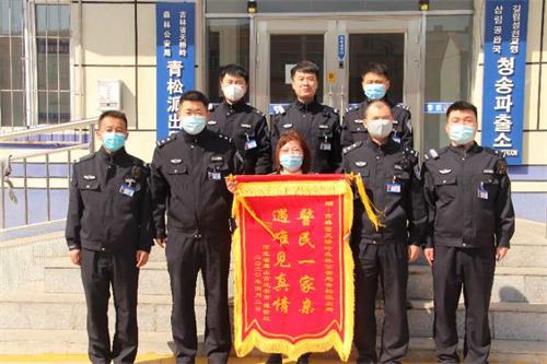 今年4月,疫情刚刚缓解,家住河北唐山的谭女士回乡探望母亲,在谭某准备返回唐山时,路过路边食品店购买物品手机不慎掉落,手机中存着谭女士与母亲的大量合影,记录着谭女士此行的快乐时光,手机的丢失让谭女士焦急万分,来到青松派出所求助。青松民警经过1个小时的寻找,找到手机线索。为不耽搁谭女士行程,民警驱车几十公里,将手机完好无损的找回交到谭女士手中。看着失而复得的手机,谭女士做出一个让民警感到的事情,谭女士推迟返家时间,来回驾车200多公里到延吉市为民警制作一面绣着“警民一家亲、患难见真情”的鲜艳锦旗,与民警合影留念,谭女士说道:此行最大的收获是与父母的团聚,更大的收获是见到了家乡民警的热情。