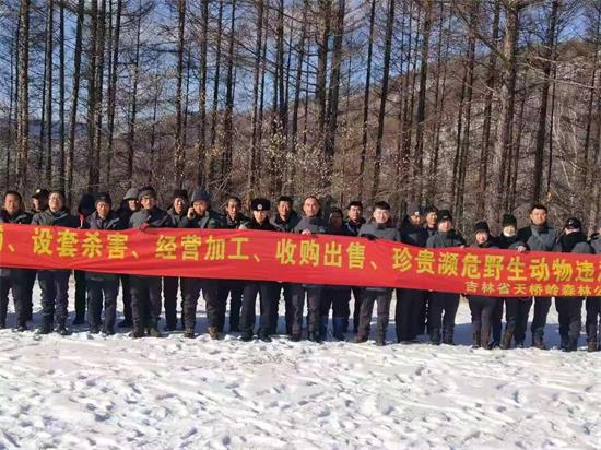 东北虎豹国家公园体制试点任务基本圆满完成,吉林省天桥岭局的虎豹保护工作取得了阶段性的胜利,为进一步确保天桥岭局辖区东北虎豹及其栖息地的绝对安全,坚决打击乱捕滥乱猎及非法出售贩卖使用野生动物行为,全面加强天桥岭局辖区东北虎豹及其猎物种群资源保护工作,维护生态平衡。12月1 日,天桥岭林业局和天桥岭森林公安局在全局范围内全面组织开展巡山清套、打击乱捕滥猎及非法出售贩卖食用野生动物行为专项行动拉开序幕。