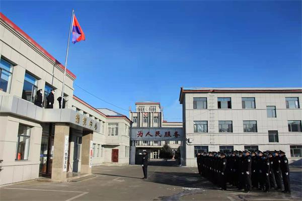 为深入贯彻习近平总书记重要训词精神,致敬荣光的人民警察节,进一步强化民警的使命感、归属感,增强队伍凝聚力和战斗力,展现公安民警良好的精神风貌, 1月9日上午,天桥岭森林公安局在指挥中心办公室楼前集合,举行升警旗、重温入警宣誓仪式,喜迎首个中国人民警察节。仪式由党委委员、政治处主任李文主持,党委成员和全体民警参加了此次升旗仪式。