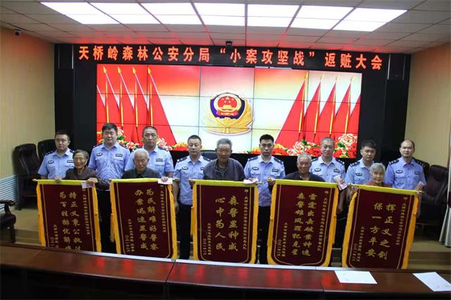 在“为民实践”我为群众办实事活动中,天桥岭森林公安分局森侦大队和青松派出所秉承解决群众“急难愁盼”问题为着力点,互相协作破获二起在诈骗案,为群众及时挽回经济损失一万三千余元,9月10日下午,局党委组织两部门民警召开返赃会议,将被骗钱款如数返还5名受骗当事人。受骗群众告诉记者,本来以为钱被骗就找不回来了,没想到办案民警快速帮我们追回了损失。5面锦旗表达了我们对公安机关的感激之情。