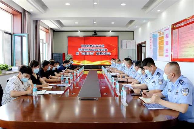为进一步畅通警民沟通联系渠道,广泛接受社会各界对公安机关执法活动的监督,征求对公安机关开展夏季治安打击整治“百日行动”意见和建议,8月2日,省公安厅森林公安局和龙森林公安分局组织召开警风警纪监督员监督员座谈会暨“百日行动”征求意见会,分局党委成员和相关部门负责人以及受邀的9名警民、警企、警风警纪监督员代表参加了座谈会。