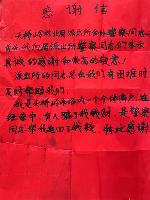 随后,青松派出所民警将追回的财物逐一返回给受害群众。当受害群众领回失而复得的财物时,喜悦之情溢于言表,本以为受骗的钱找不回来,没想到这么快返还给了我们,并送上一封感谢信,对青松派出所民警破案迅速、尽职尽责的工作态度表示了衷心的感谢并给予高度评价。