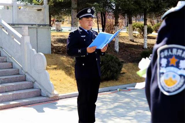 袁云峰局长讲话指出:我们要不忘初心、牢记历史,继承革命先烈敢于斗争、不怕牺牲的优良传统,继续发扬特别能吃苦、特别能战斗、特别能奉献的宝贵精神,以更加开阔的眼界锐意进取、奋发图强,更加有力的举措开拓创新、攻坚克难,更加扎实的作风求真务实、勇毅笃行,将追思之情转化为奋勇前进的不竭动力,为守护平安林区贡献力量。随后,胡治军政委带领全体民警重温《入警誓词》,信念矢志不渝,誓词铿锵有力,表达了对党和公安事业的无限忠诚。在“革命烈士英名录”墙前,大家深切缅怀革命先烈的英雄事迹和丰功伟绩。