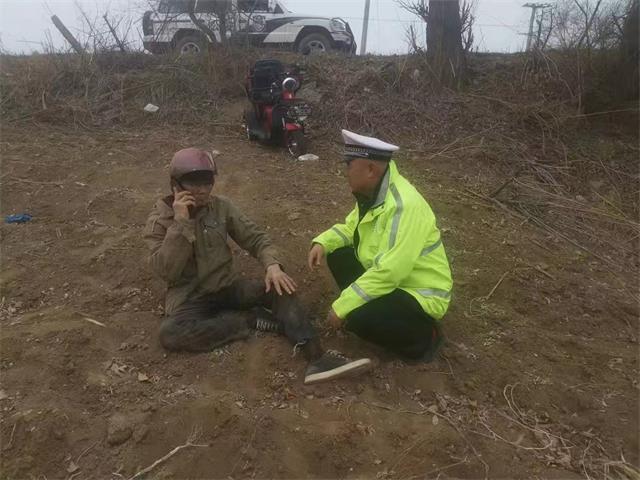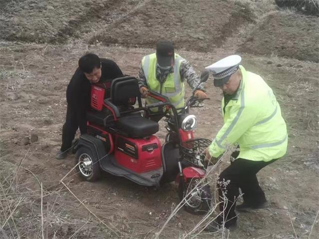 据悉,交警大队民警在开展日常巡逻工作中,途径至和马线2公里处时,接到群众求助称:一位群众连同三轮车滑入路边坡下,其可能处于昏迷状态,请求民警提供帮助。接到求助后,执勤民警立即赶赴现场,发现一名男子侧趴在路旁坡下,民警试图将其唤醒,昏迷男子逐渐恢复意识,在询问其身体并无大碍后,民警将其搀扶至路旁休息,并协助拨通家属联系方式。待其家属赶到现场后,民警与热心群众合力将三轮车推到路边,并对三轮车进行了详细检查,未发现车辆损坏痕迹。临行前,民警再三叮嘱,风沙天气骑行,能见度较低,务必要减速慢行,注意骑行安全,受救助群众及其家属对民警的暖心救助连连表示感谢。