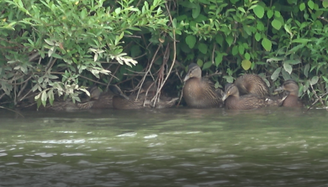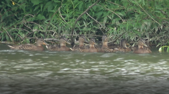 9只绿头鸭宝宝嘎呀河畔嬉戏,尽享夏日清凉