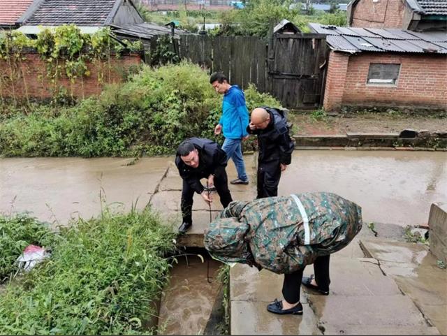 针对辖区连续降雨实际情况,治安大队、西山派出所联合林园社区组建防汛先锋队,及时对辖区易积水、易塌方、易漫水等重点路段、重点区域开展全面排查整治,避免道路积水影响行人、车辆安全通行。在排查过程中,发现西山八居排水通道出现堵塞路障,导致路面发生积水现象。了解情况后,防汛先锋队立即展开处置工作,使用工具清理道路积水、疏通排水沟,避免出现险情。同时,民警通过现场讲解等方式,向群众开展防汛、防雷电等自然灾害的避险防护常识宣传,进一步提高群众的防灾避险意识和自救能力。