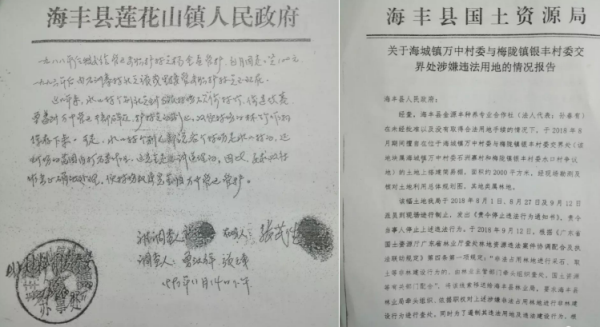 倆村村民向記者傾訴:“土地確權證,海豐縣國土資源局確認報告等證據充足,倆村的村小組和村民向上級部門上訪了十幾年,也受到過上級有關領導重視。當地政府相關部門也有做好了方案和執法人員的安排,就在準備進行執法行動時,突然就停止了,村民們感到很不解,這到底隱藏著多少不為人知的故事?此土地侵占事件已發生這麽多年了,為何在當地卻遲遲得不到落實處理?高某輝等仍然在當地稱霸壹方,這到底是出於什麽原因?倆村的村小組和村民希望政府能給他們主持公道,秉公處理。還他們被占用多年的山地土地。也希望政府嚴厲打擊破壞農村生態自然,破壞鄉村綠水青山的不法分子。