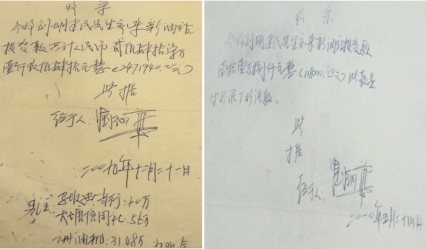 韶关市曲江区顺风加油站有限公司原法定代表人及股东刘细华出具的收据