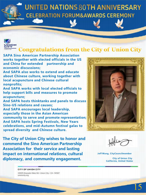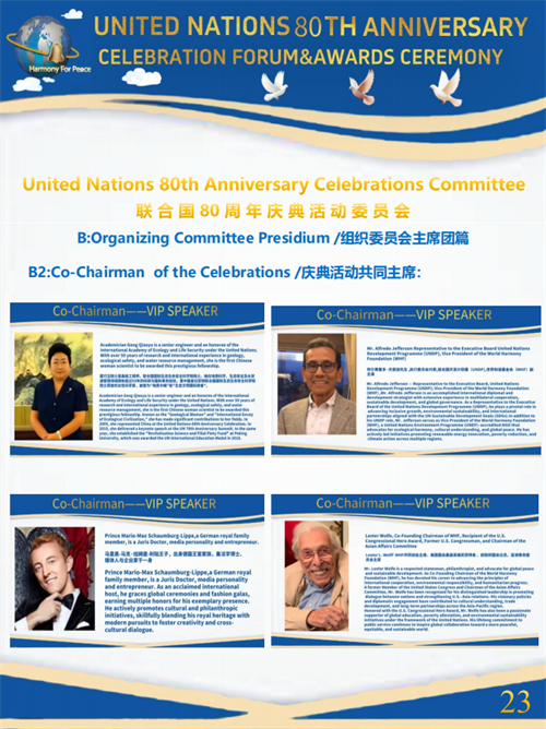 文章标题:慶祝聯合國成立80週年暨聯合國環境署NGO世界和諧基金會成立20週年