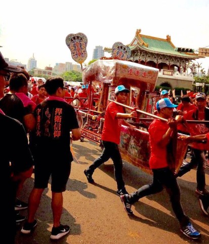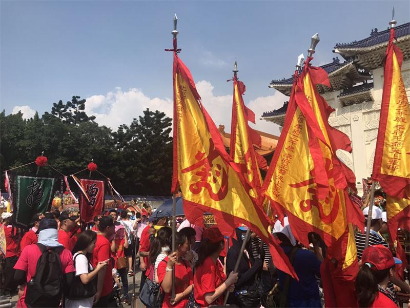 廟會大遊行的方式「遶境凱道」,包括北港武德宮等廟已中午在中正紀念堂集結上街遊行,為守護香火發聲。