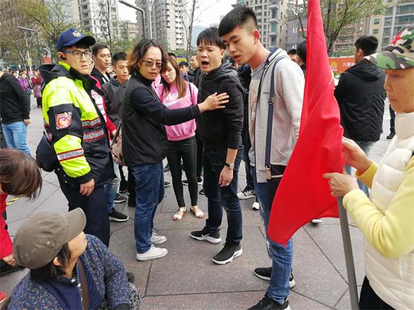 是日下午約3:30左右,廣場出現了一群來自南台灣的青年人,他們因不滿中華愛國同心會的同仁們在廣場高呼“中國加油,中國人民萬歲”的口號,竟然集體攻擊在埸中華愛國同心會的成員。最終竟造成同心會四人受傷,二人由救護車送醫院,一人入住台北醫學院附屬醫院加護病房的慘況。入住加護病房的張厚源至今尚未出院。