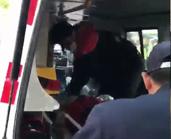 救護車上,被搶救中的繆德生