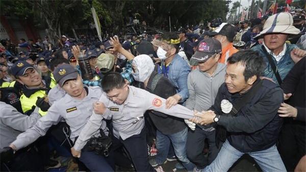 立院反軍改衝突持續擴大惡化,有抗議民眾聚集在立院大門口與警方衝突,面對雙方肢體衝突,警方第一線員警卻不敵退役軍人,據了解這批參與抗爭的退役人員,有部分成員來自海軍陸戰隊,甚至有知名涼山特種部隊成員參與,他們年紀雖大,兇狠度和敏捷身手,猶如失控暴民大幹一場,讓一般基層警員難以抗拒。