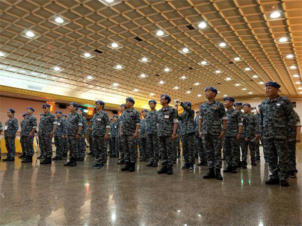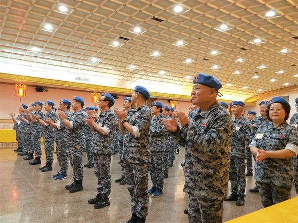 中华民国台湾军政府于三军军官俱乐部胜利厅举行成军茶会,所有参加人员都当场换穿迷彩服、戴上贝雷帽,按照年龄编入维和部队建制班。