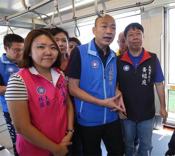 韓國瑜由國民黨高雄市議員參選人方信淵、陸淑美、宋立彬陪同,先後到帝仙宮、鳳橋宮參拜,受到支持者熱烈歡迎、爭相合照。