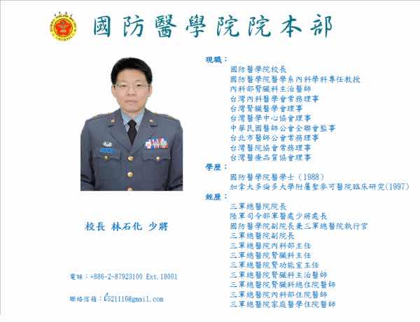 林石化已被調離現職,但國防醫學院官網上仍未撤除他的公開資料。(圖擷取自國防醫學院官網)