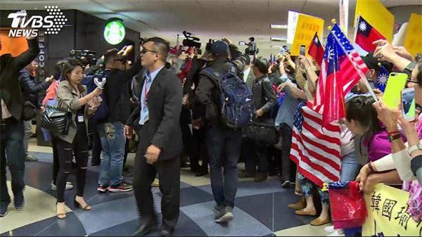 百名韓粉熱情激昂,擠爆機場大廳!洛杉磯警方協助清開1條路,不過大批僑胞,一看到韓國瑜現身,全都往前猛擠,聲嘶力竭地大喊「選總統」,一時間記者跟熱情的僑胞全擠在一起,團團包圍韓國瑜,場面完全失控。