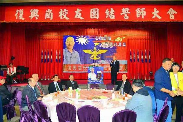 復興崗校友會昨(14)日為國民黨總統候選人韓國瑜舉辦團結誓師大會,各軍事院校校友會及相關社團協會代表與會,復興崗校友會發布動員召集令,要求所有校友發揮「政戰專長」,在投票當天擔任「韓家軍」監票部隊,軍系前國民黨副主席陳鎮湘高喊支持國民黨不分區排名第四位的候選人吳斯懷,以防止泛藍的核心力量崩解。