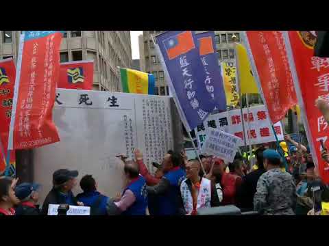 台湾立法院今天将在院会审议“反渗透法”,数个民间团体一早聚集在立法院外抗议。中华统一促进党总裁“白狼”张安乐自备大型生死状在现场亲签,誓言两岸发生战争时,“愿亲往第一线协商和平方案”