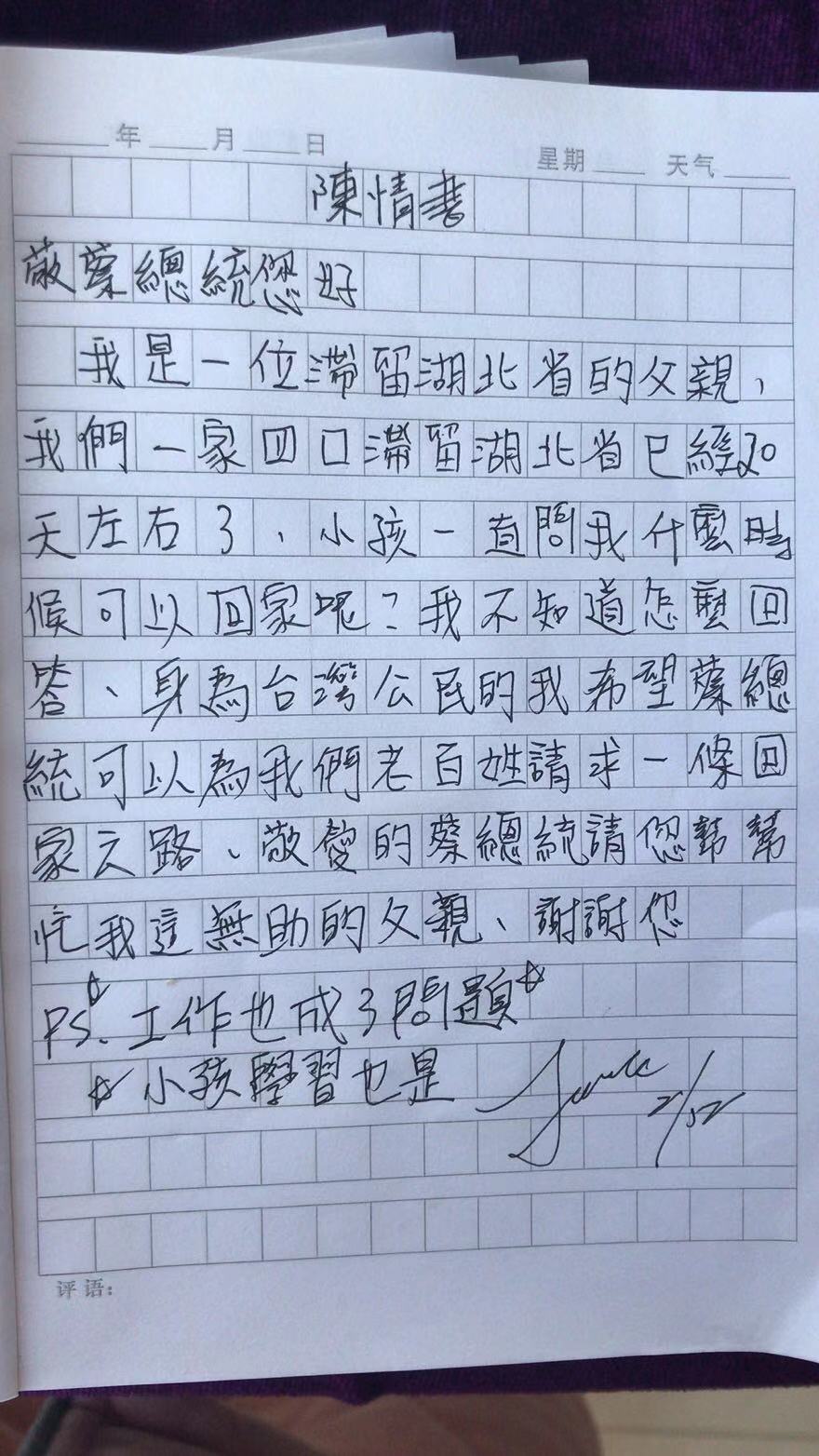 文章标题:快讯:滞留湖北台商陆配家人前往陆委会抗议,我们要回家