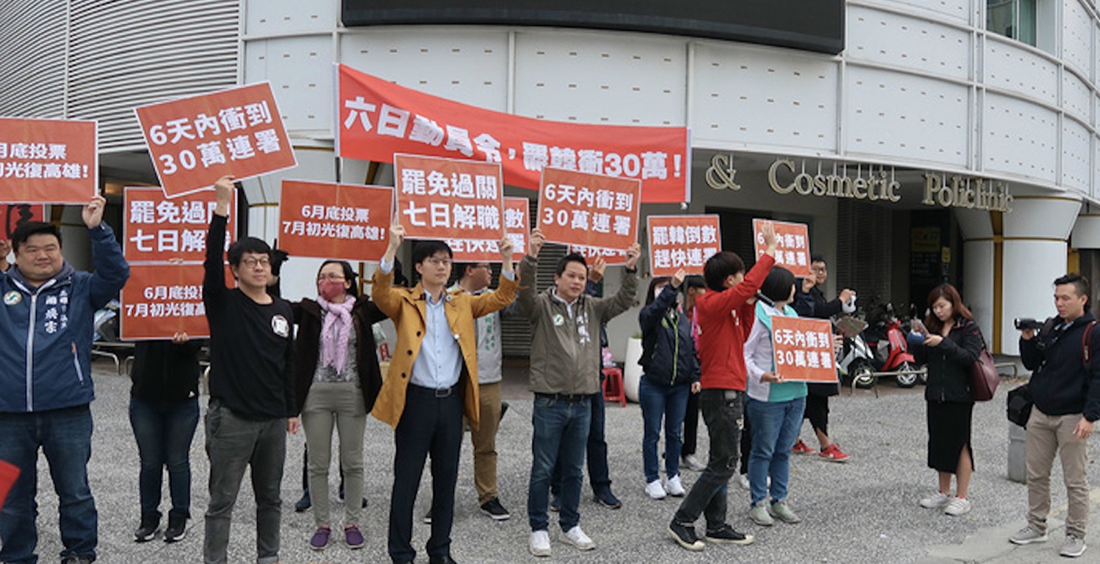 台湾高雄罢韩团体走上街头,两个月时间各地摆摊,二阶段连署书40万份送进选委会,查对结果确定过关,罢免市长韩国瑜投票,最快落在6月中旬,高雄市选委会主委 陈雄文:“应该不是6月13,就是6月6号。”不过今天下午,在议会的另一场攻防战,就是开议到底要不要延期,因为攸关罢韩投票经费,到底从哪来。