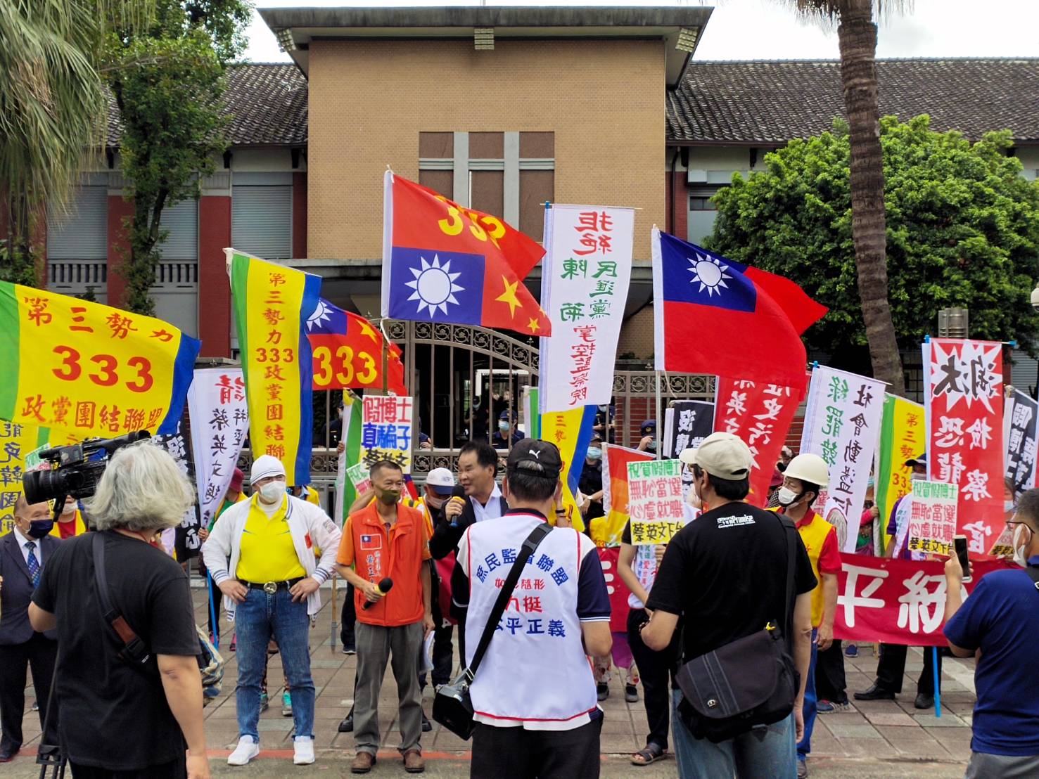 台湾第三势力333政党联盟,如影随形,爱台联盟,共和党,新住民福利党共同发动,阻止假学历,假博士诈骗集团上任就职!前往抗议!