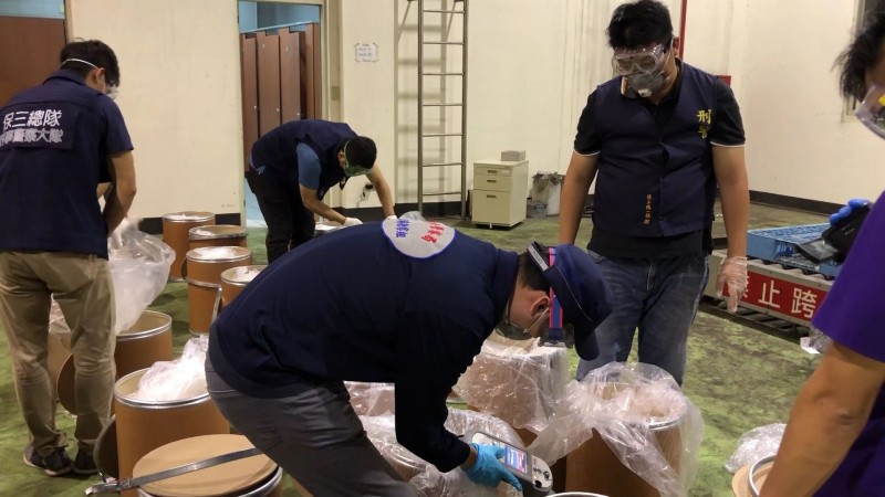 上月18日,刑事局侦三大队会同财政部关务署台中关在台中港集中查验区,查扣货柜走私“2-溴-4甲基苯丙酮”120桶(毛重3,001公斤),并拘提张姓等4名犯嫌到案,又在彰化县福兴乡走私毒品集团仓库内查扣“2-溴-4甲基苯丙酮”22包(毛重528公斤),累计总重量达3,529公斤。