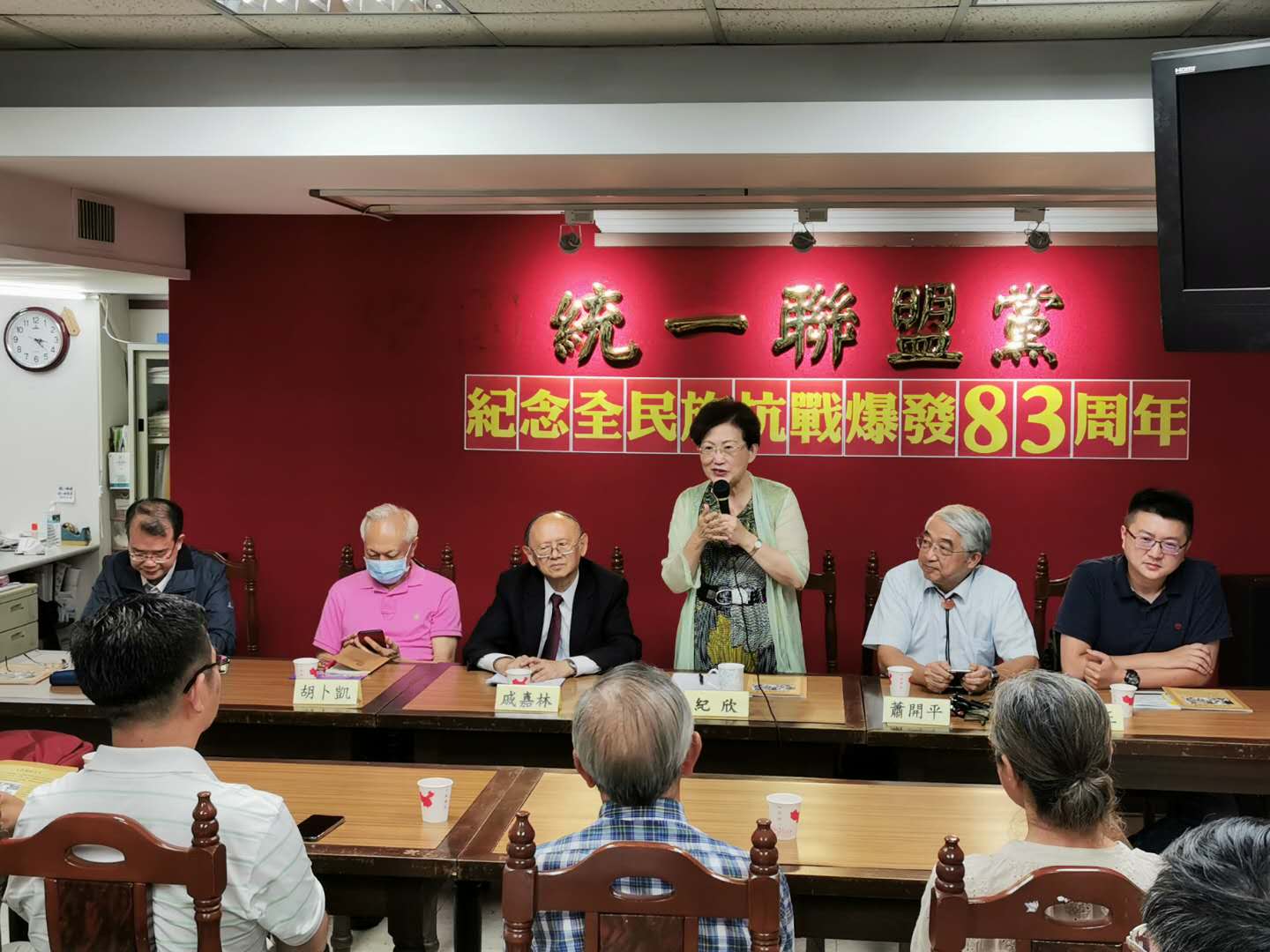 7月6日下午两点,统一联盟党在台北中央党部会议厅举办“全民族抗战83周年纪念会”。党主席纪欣亲自主持了这场纪念会,并邀请了五位专者学者,针对不同领域,讲述全民族抗战的意义。