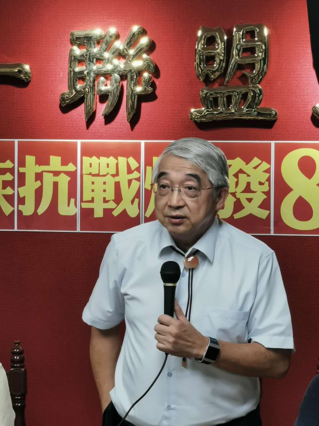 纪主席首先介绍了统盟自1988年创立以来,每年七七举办纪念会,是因为日本1937年发动芦沟桥事变后,全中国人民,包括已被日本高压统治了42年的台湾台胞,忍无可忍,团结起来,一致抗日,终于赢得胜利,光复台湾。但其后不久,由于中国内战延续和外部势力干涉,海峡两岸陷入长期的政治对立,更令人遗憾的是,83年后,台湾的绿营罔顾“两岸同属一中”的历史及法理事实,而蓝营也本末倒置地坚称“没有各表,就没有一中”,这显示他们都未受到全民抗战的历史启迪。本党在此郑重呼吁:唯有两岸中国人团结起来,一致对外,才能实现两岸和平统一,也才不愧抗日先贤先烈的牺牲奋斗!