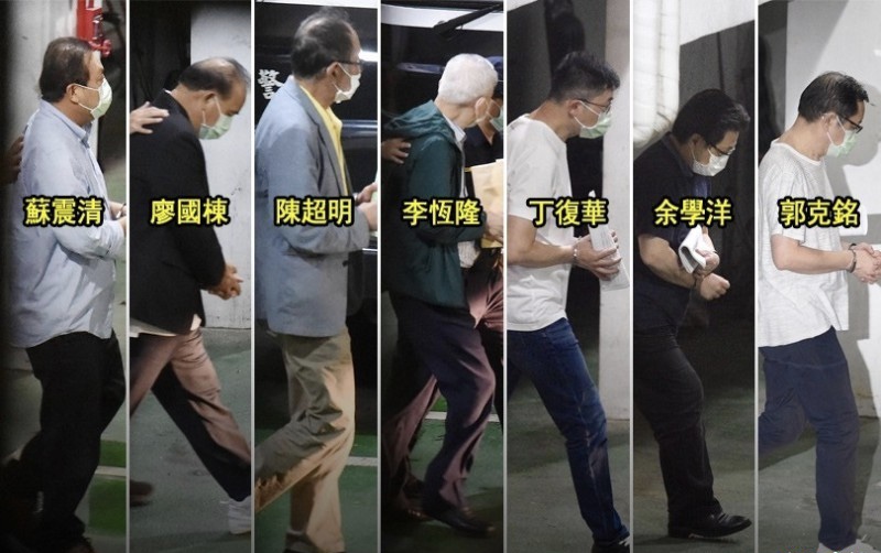 台湾前、现任立法委员及多名助理集体被控涉收受有意争夺SOGO经营权的前太平洋流通投资公司(简称太流)董事长李恒隆的贿款,协助推动有“SOGO条款”之称的公司法第9条修法。台北地方法院4日下午做出裁定,现任立委苏震清、廖国栋、陈超明以及李恒隆、中间人郭克铭、苏的助理余学洋、廖的助理丁复华7人羁押禁见,前立委徐永明则是80万交保,稍早7人戴铐步上囚车,并被押往台北看守所。