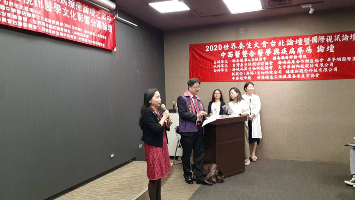 “2020中西医整合医学暨疾病疗愈论坛”已于2020年7月26日上午九点到六点于台湾大学集思会议中心成功盛大举行,该活动主办单位为联合国华人友好协会,主要的承办单位则为海峡两岸生物科技协会、台湾养生休闲保健协会、中华经济报、世界联合国家论坛报社、暨世界卫生组织文化健康养老产业协会,而共同合办的单位还有大中华新科技股份有限公司、福建新观念科技有限公司、新观念无锡生物科技有限公司等单位。在全球整合中西医共同抗疫的热潮中,当日实体论坛与国际视讯论坛共同举行,盛况空前,座无虚席,并得到与会者一致的赞誉和广大的回响,而欲罢不能。主办单位表示,将于2020年9月27日上午九点到六点台湾大学集思会议中心柏拉图厅再度扩大举办“2020中西医整合医学暨身心灵疗愈论坛”全天候的公益医学论坛,以迎接这个举世抗击疫情的热潮和扩大影响。