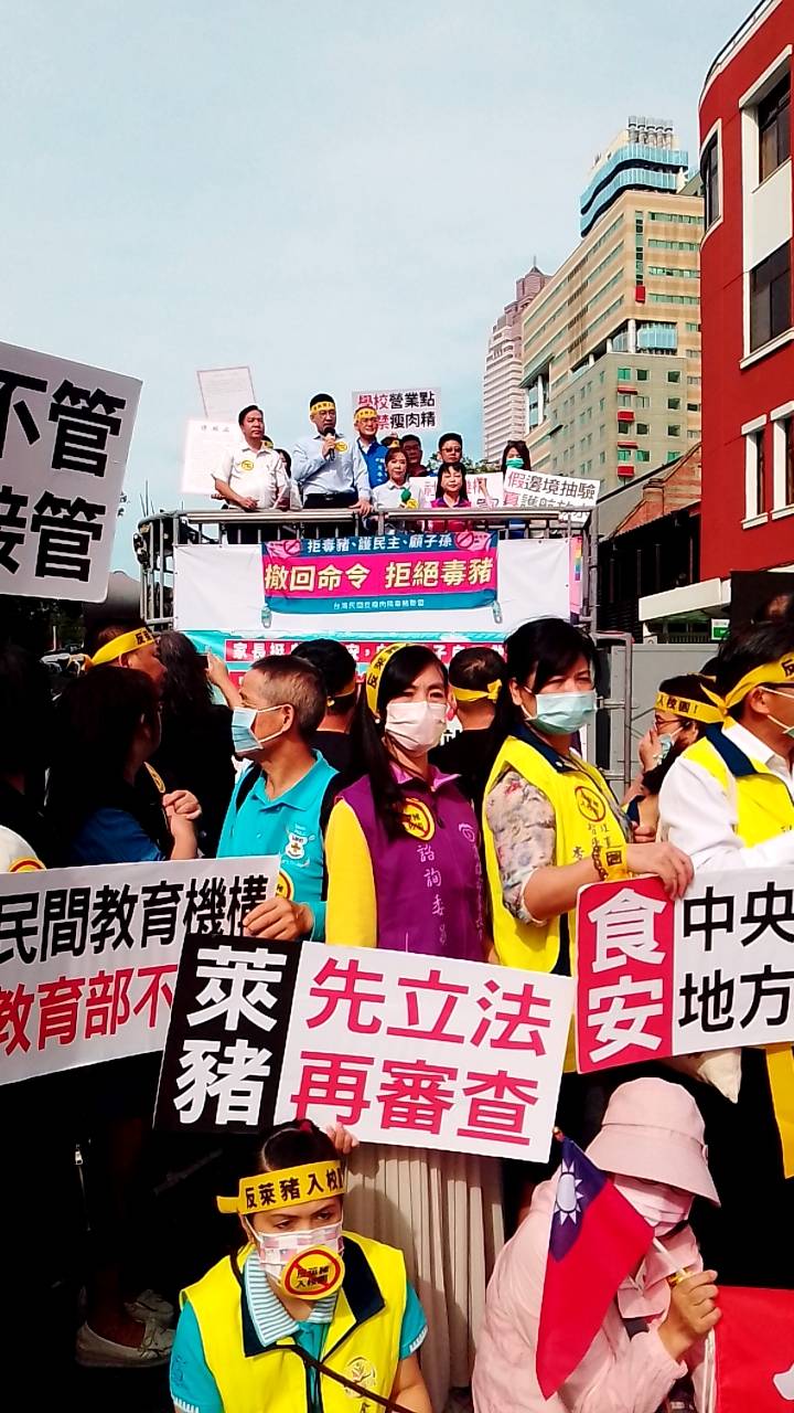 今日11 月2 日星期一,台北举办反 毒猪.牛抗议活动,早上 8点一早,经国前总统义女杜彩菊女士,秉持经国先生关心台湾百姓的精神及学校学生的身体健康前往台北市济南路一段2-1号声援抗议活动。