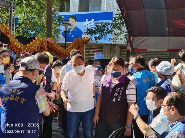 图片说明:新北市长侯友宜亲自向现场嘉宾与宫庙负责人、表演团体、报名踩街团体致意。(记者包克明摄)