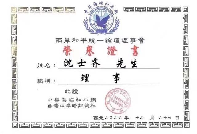 中华台湾企业投资协会长沈士齐为台湾回归祖国和平统一做贡献