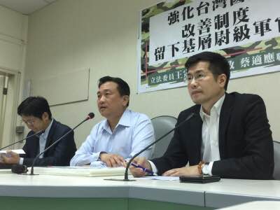 民進黨立委王定宇、蔡適應、羅致政今天(23日)表示,國軍基層「尉級」軍官缺員情況嚴重,認為不僅會影響部隊指揮戰力,更是危及國家安全,因此主張提案修改「陸海空軍軍官士官服役條例」,不僅延長「尉級」軍官的服役年限也提高作戰加給。