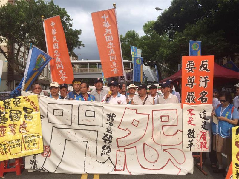 忠義同志會陳虎門將軍率領軍情局退役人員亦前往抗議及公開批評小英政府,代表軍公教人員痛批改革無力。