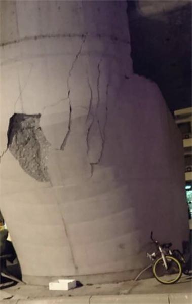 花蓮縣花蓮市和平路581號遠東百貨鋼筋外露、結構傾斜。