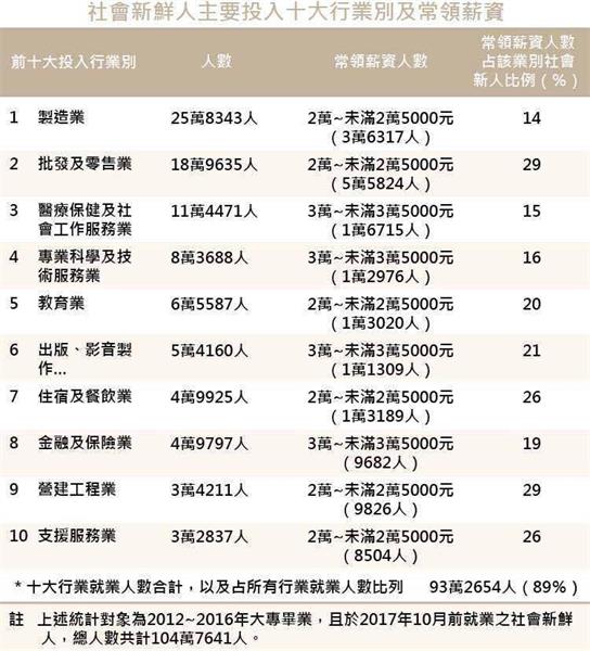 勞動部此次的社會新鮮人就業大調查便顯示,即使擁有不錯的學歷,批發零售從業人員仍有近1/3(29%)月薪落在2萬~未滿2萬5000元之間;住宿及餐飲從業人員也有逾1/4(26%)月薪未滿2萬5000元;就連金融保險業人員也有近1/5(19%)月薪不到3萬5000元…,「試想自己的骨肉若連父母都不疼、不肯定,又怎能怪他老往別人家跑!?」