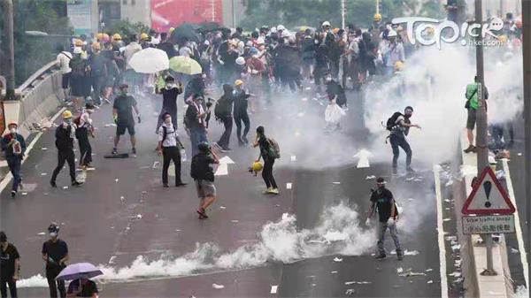 晚上10時左右,警方與示威者在上環爆發衝突。警方兩次舉黑旗,發出催淚彈警告。記者現場目測,在場示威者有數百人,警方發出多輪催淚彈驅趕示威者。記者在現場聞到刺鼻氣味,皮膚有灼熱感。