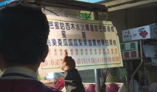 台湾台北市政府市场处人员会同警方来到士林夜市,要对眼前这间水果摊开出罚单,事件起因有民众在网路上发文指出,当时他看到摊位女员工,热情招呼几名来买的韩国客人,结帐时一袋水果竟然要价1089元,便提供相关证据举报。