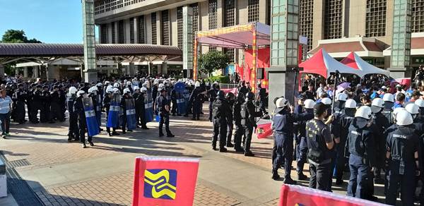 台湾台北中正一分局在统促党于今(2019)年十月一日庆祝中华人民共和国国庆活动现场部署保安警力及霹雳小组待命