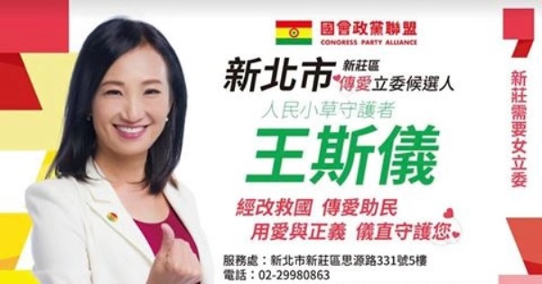 台湾新北市新庄是台湾各县市外来人口最多的地区,也是工业地区,一个特色多元素的地区,历年选举均是民进党的鉄票区,国会联盟政党推荐出女刺客王斯仪挑战该区,王斯仪本着传爱命理身心灵大师热心公益,照顾弱势族群爱心希望能够翻转新庄,发挥新庄优势,以革新政府体制,改革开放,发展经济,推动两岸和平,创造全民富裕生活为宗旨。
