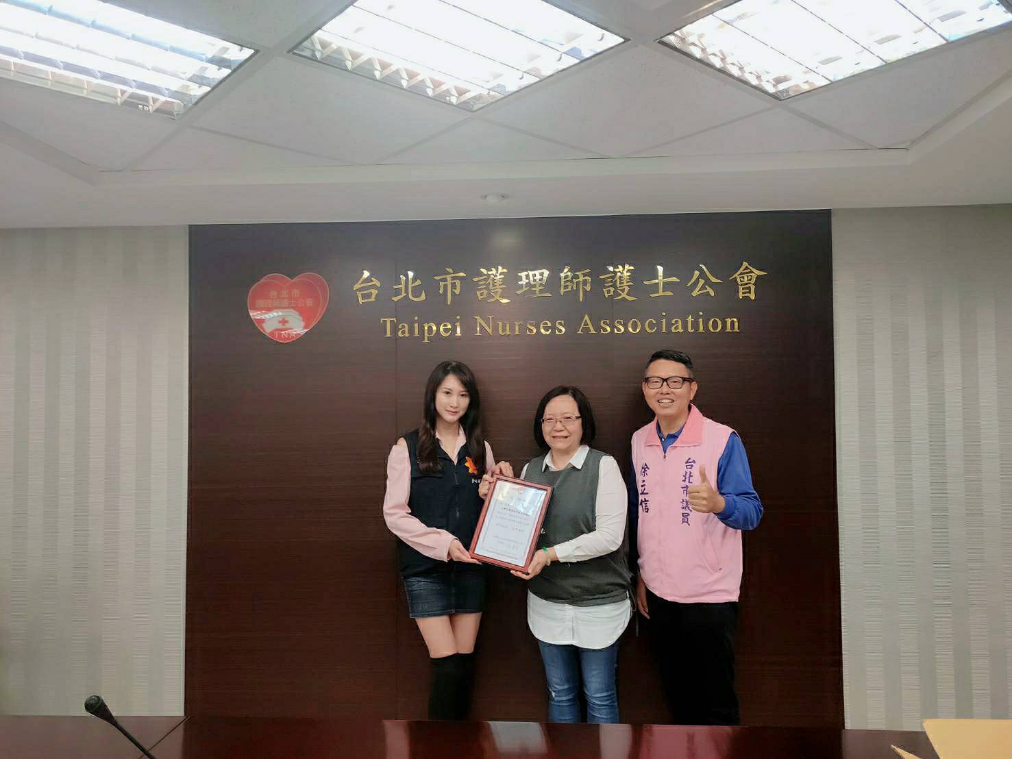 据了解,除了为辛劳的第一线医护人员打气,徐立信议员2月11日安排台北市护理师护士公会的张泽芸理事长,带领理监事多人拜会台北市黄珊珊副市长,为第一线护理人员发声反应医疗口罩匮乏及配给问题之外,积极奔走为护理人员请命,更希望能征集民间力量提供第一线护理人员更具体的支持行动。
