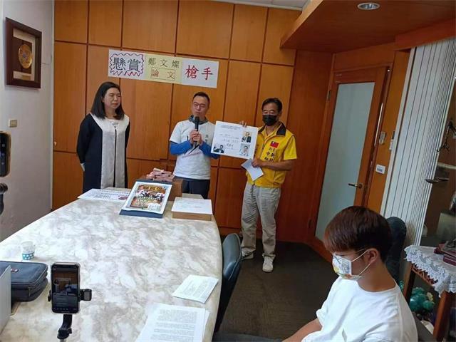 新党发言人陈丽玲律师、桃园市中坜区议员候选人游智彬等人今(11)日召开「悬赏10万寻找郑文灿论文枪手 共犯林佳龙踹共」记者会,公布悬赏10万新台币现金寻找郑文灿论文代写枪手,呼吁若是中国大陆枪手自首也可以获得人民币2万元。游智彬质疑,郑文灿论文极可能是大陆枪手代写,否则,郑文灿本人过了一周后仍一反常态低调避谈,毫无回应?